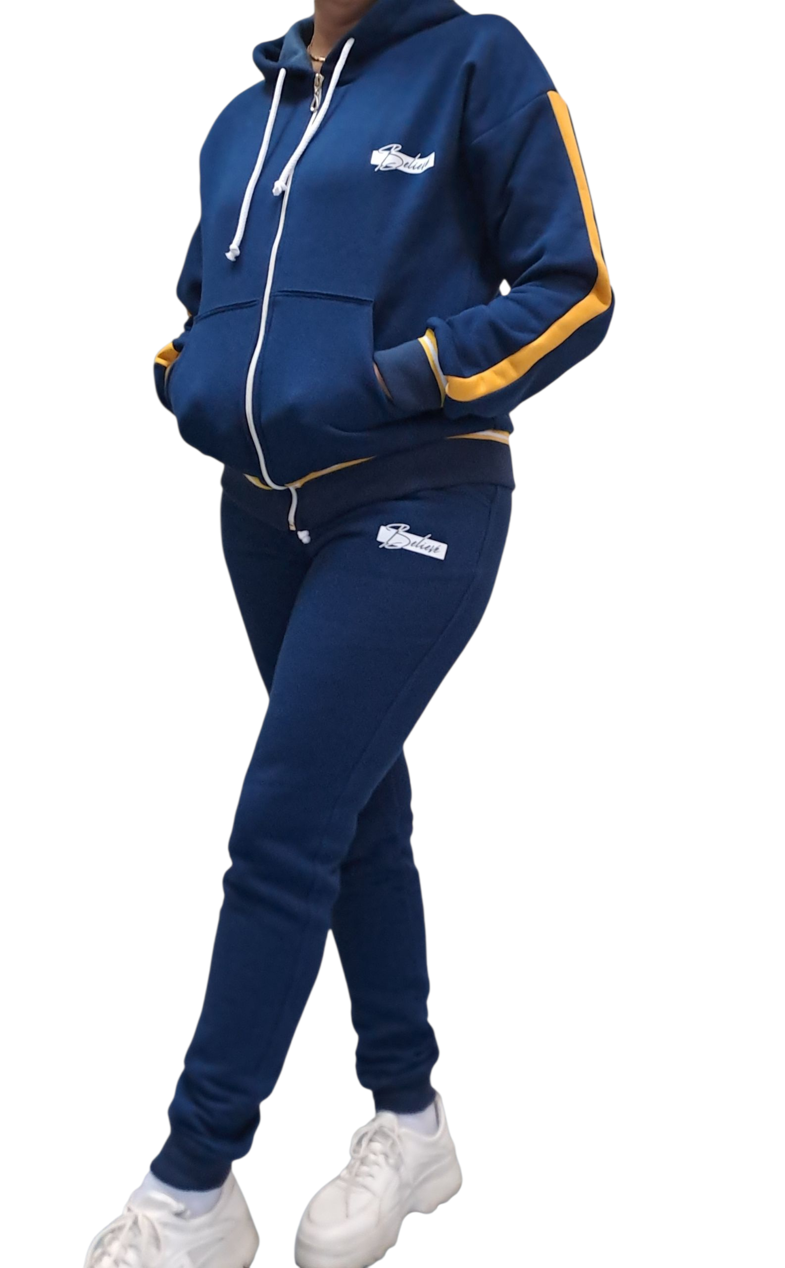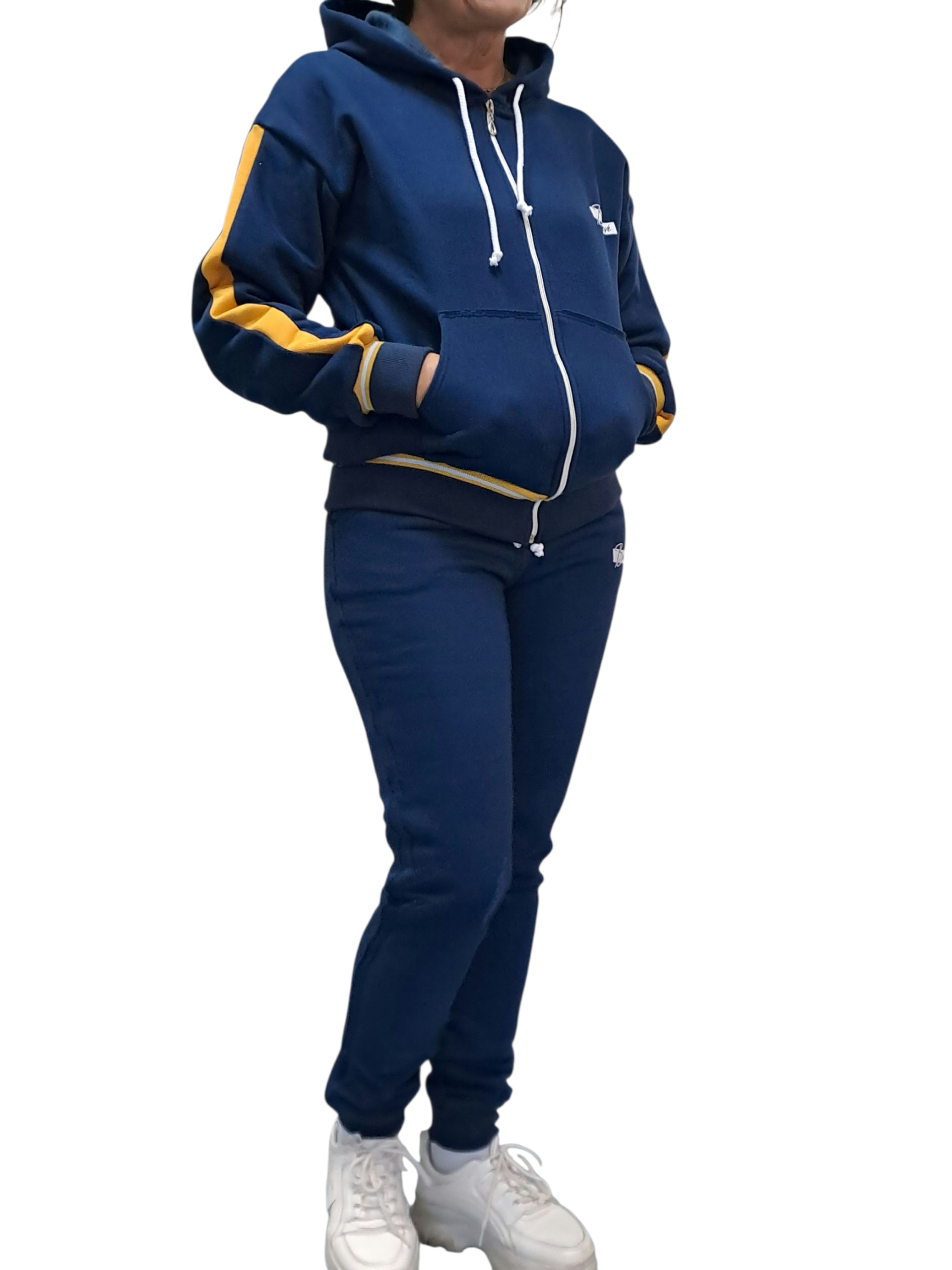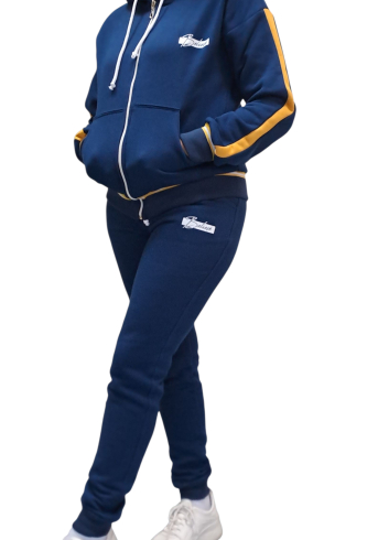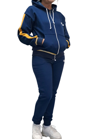 Тъмно син ,ватиран комплект с жълт кант на ръкава .