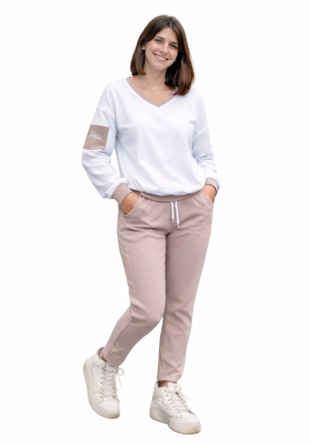 Дамски комплект 0013.с бяла блуза и бежов панталон