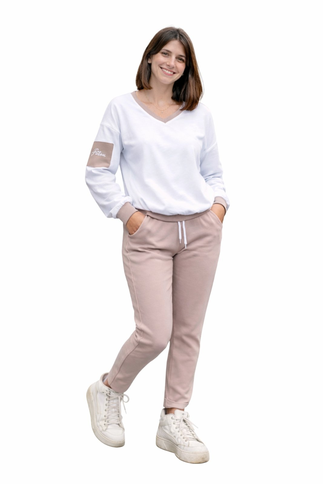 4. Дамски комплект 0013.с бяла блуза и бежов панталон